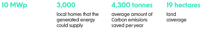 Once constructed, the export capacity of 10 MWp will generate enough power to support 3,000 homes per year, whilst saving approximately 4,300 tonnes of CO₂ each year, throughout the site’s 40 year lifecycle.
