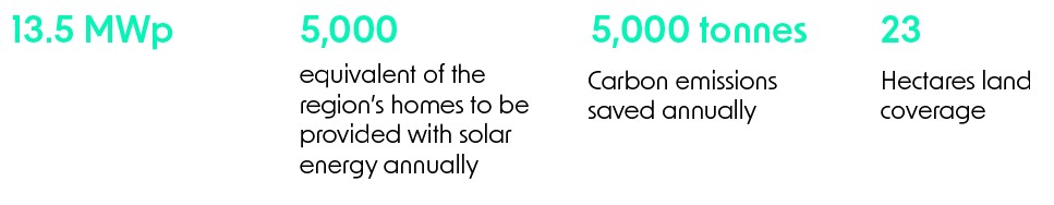 With a capacity of 13.5MWp, the facility will generate enough power for the equivalent of approximately 5,000 homes, whilst saving around 5,000 tonnes per year of CO₂.
